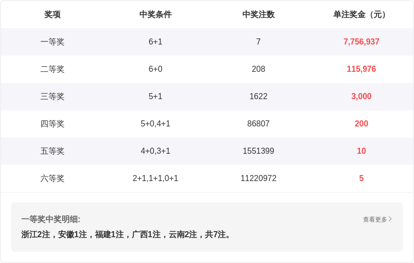 | 期号 | 开奖号码 | 一区 | 二区 | 三区 |