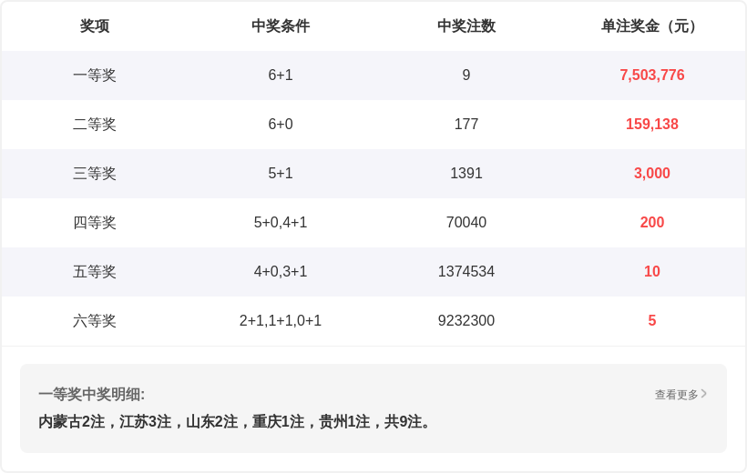 双色球25117期开奖结果06 08 17 20 25 33 + 10,大小比4:2,三区比2:2:2,和值尾9,蓝球号码质合为合数。