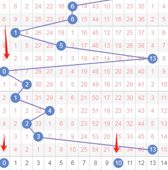 上图是体彩七星彩蓝球开奖号码走势分布图,我在上面走势图中标注出来的数字是0尾数数字0和10,到本期为止这两个尾数数字已经连续遗漏了6期上次是连续遗漏了9期,那么本期可以留意留意0尾数的数字。