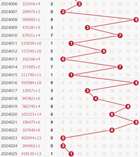 如图所示,按照走势来看,本期第七位可以考虑0~3、7~12