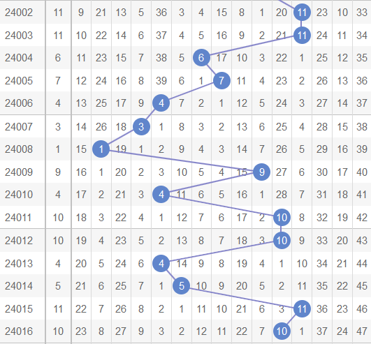 近四期的上两期和下两期都可以看做是24011~24012的翻版,也就是接下来继续走折线,且走距离一半以上