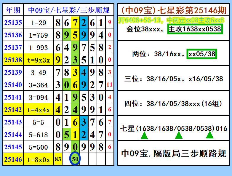 上期一招套中金位xx1x配14位合3,七星彩第144期,(采奇坐标)视频定标套码