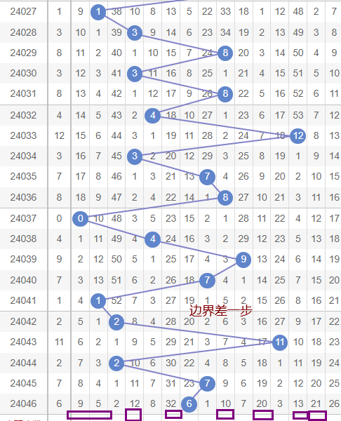 根据近期折线走一半以上的走势,走到边界差一步的情况不少,对于本期是1、4、6、8、9