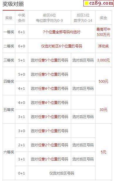 二等奖:投注号码的前6位数字与开奖号码对应位置数字相同,即中奖;