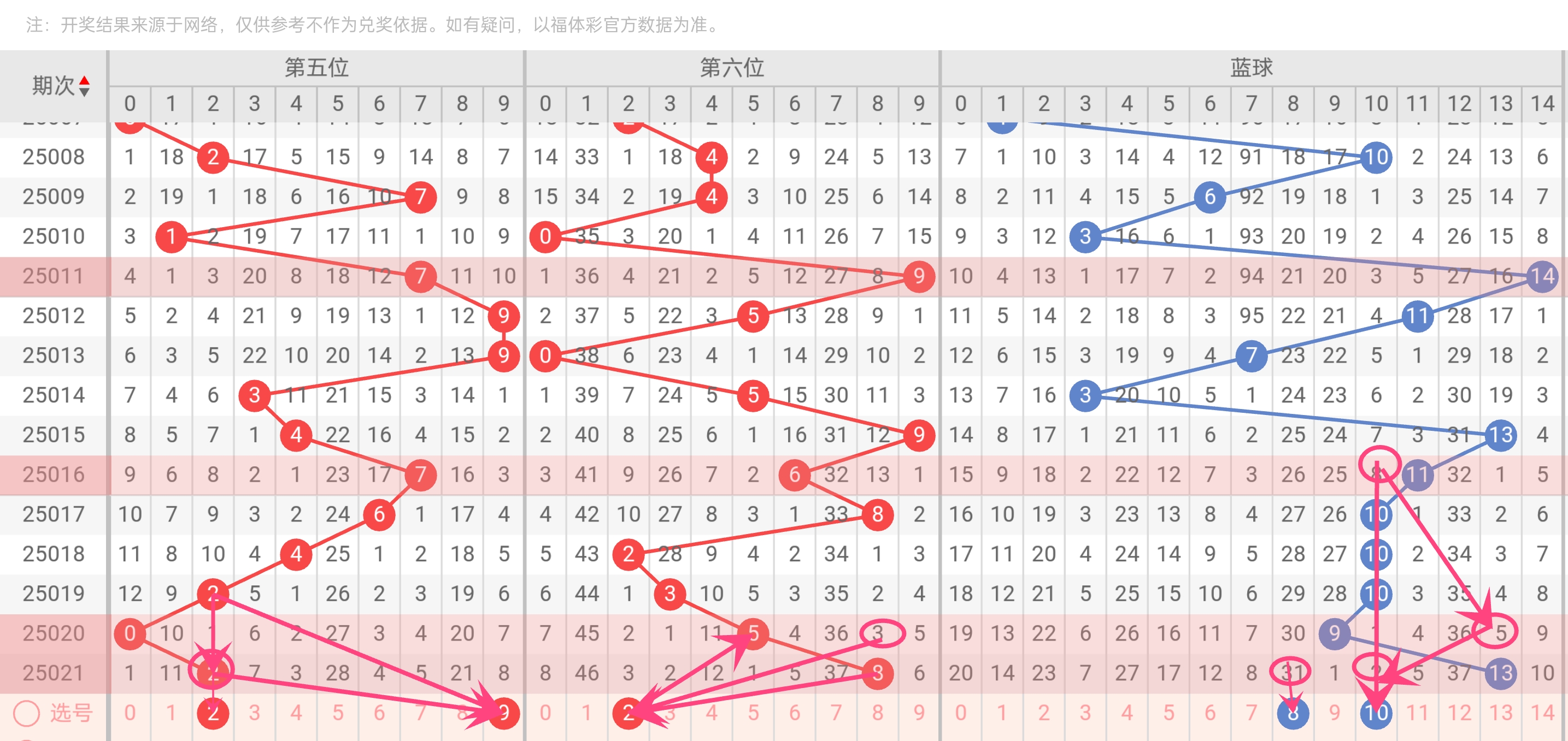 - 镜像对称:如“6,4,2”与“2,4,6”在历史中多次出现(概率6.5%),例如2024年2月25日(2025020期)号码为“7,9,8,2,0,5,9”,后三位“0,5,9”与前期“5,9,0”形成镜像。