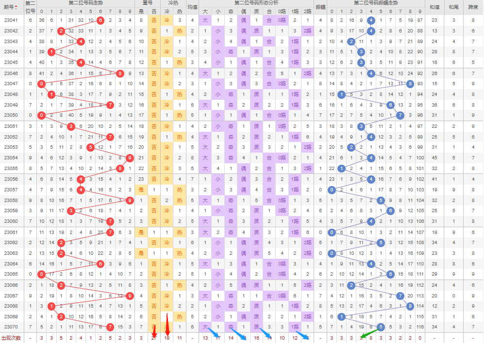 回顾上期预测的第一个号码:重号为否-正确;冷热值防冷-正确;大小号防大号-正确;奇偶数防奇数-错误;质合数防质数-错误;012路防2路-正确;振幅走势方向-错误;(7错3,个人感觉那么多属性其中012路尤为重要,只要摸准范围就大大缩小,再按大小判断,号码呼之欲出 )