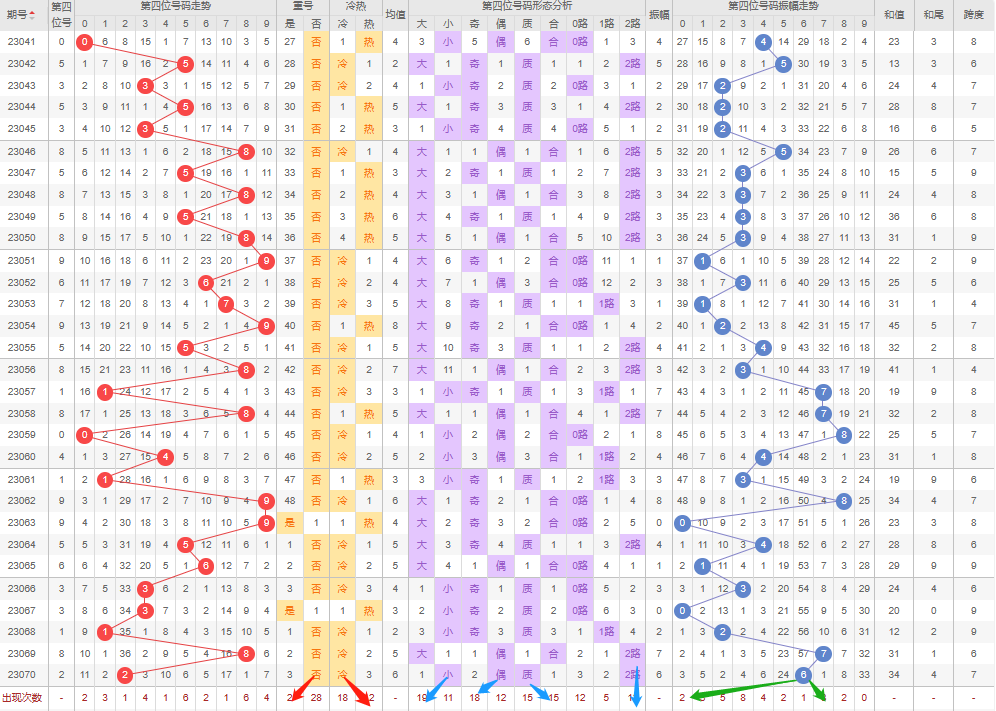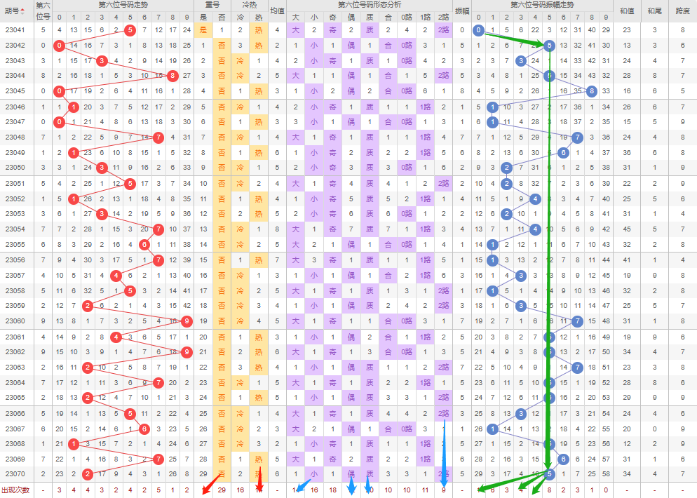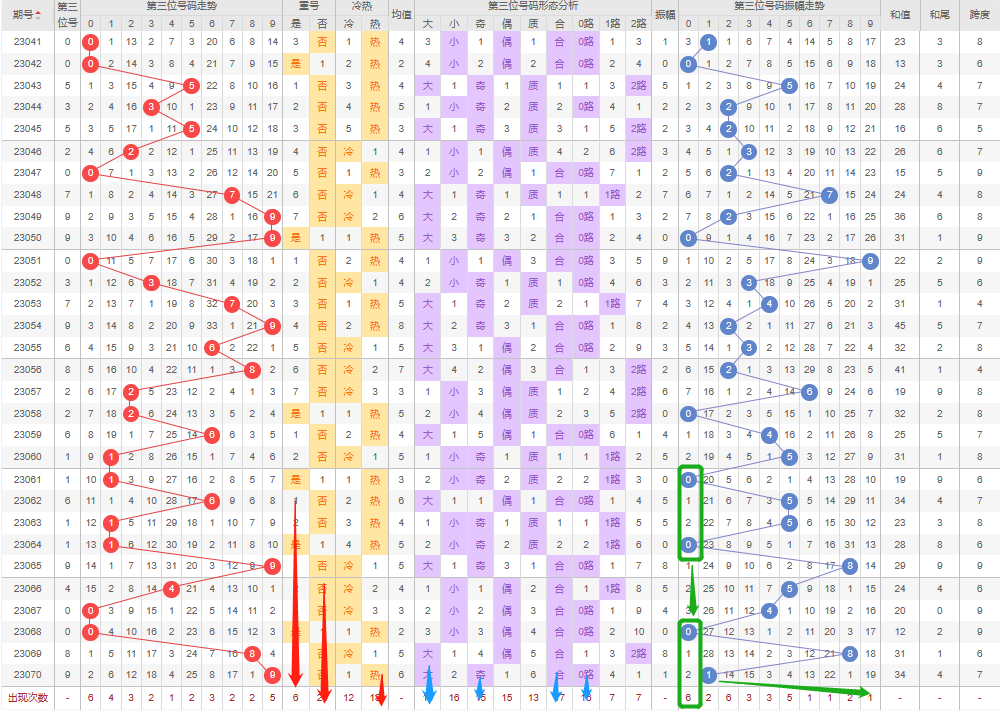 回顾上期预测的第三个号码:重号为否-正确;冷热值防冷-正确;大小号防小号-错误;奇偶数防偶数-正确;质合数防合数-正确;012路防0路-错误;振幅走势方向-错误;(7错3,还是出现偏差)