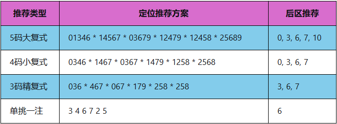 012路比推荐:2:2:2。在0路长期热出、2路长期短缺的背景下,近期2路回补信号增强,看好各路暂时均衡。
