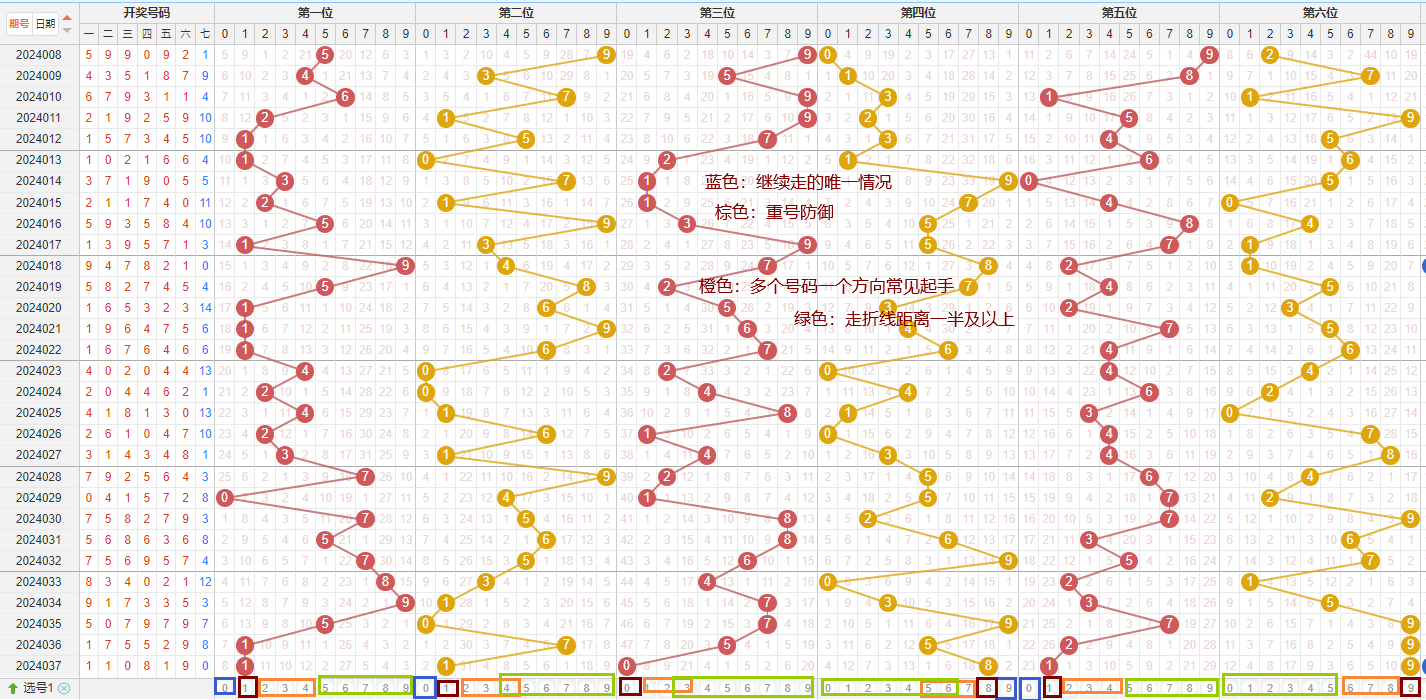 也可以根据走折线的近期走势,走距离一半及以上,也就是3、4、5、6、7、8、9,但超过边界的8、9可以降低关注度