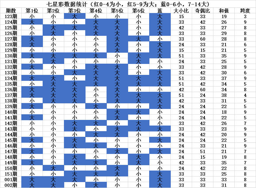 一、七星彩各位置大小分析