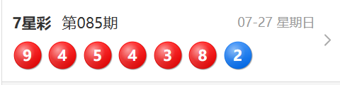 七星彩第084开奖结果为:945438-2
