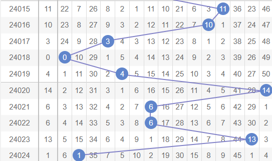 如果按照三个号码一个方向后走折线,本期应该考虑折线距离一半以上5~9,但如果按照近期的小步折腾,可以考虑0、1、3、4、5