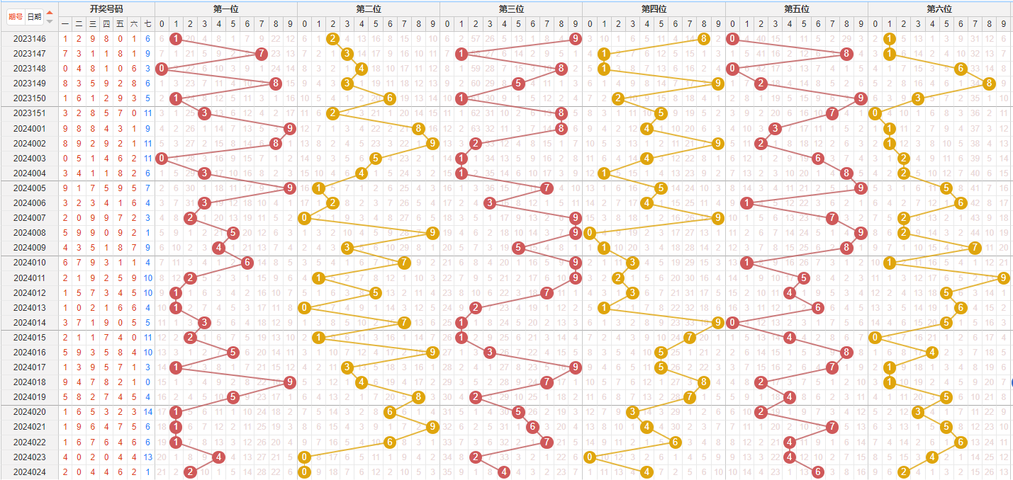 如图所示,按照走势来看,本期第七位可以考虑0、3~5、7~10