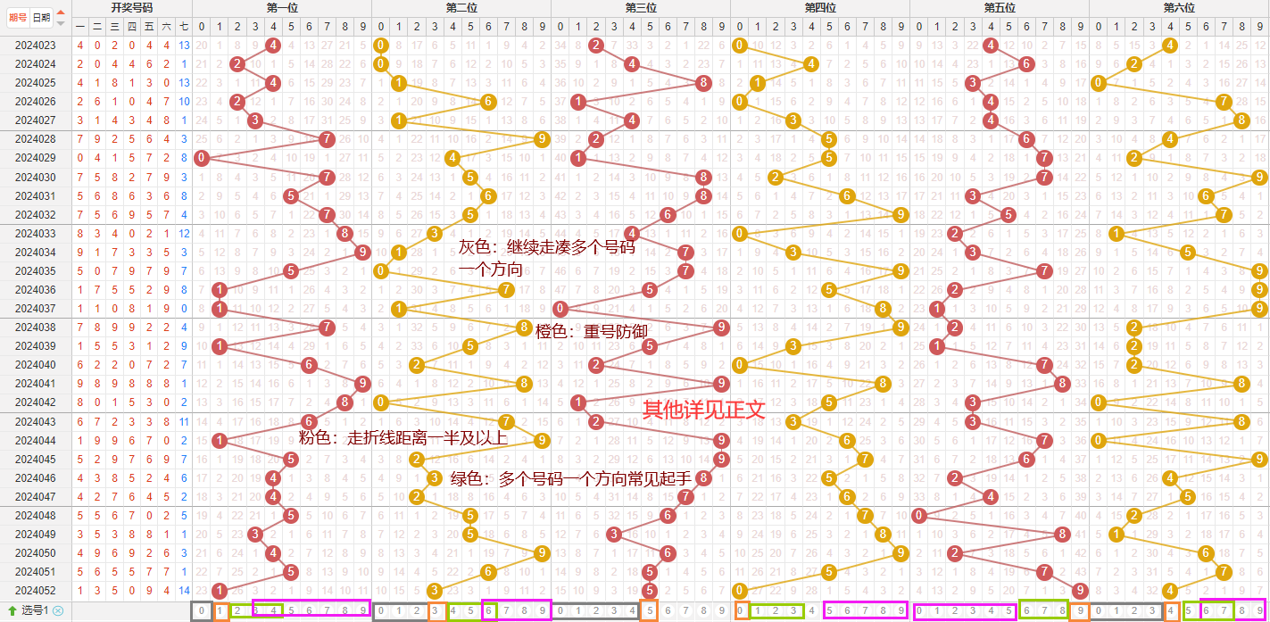 会员版中,有本人独创的数据分析法,方法的应用会有更加明确的解释,并且有大底:第一~六位不超过4个号码,蓝球(第七位)不超过六个号码
