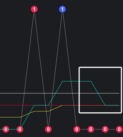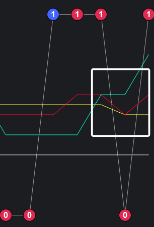 可以看到一些规律,但白框中实际上表现了两种可能:一种是接下来会出一期,一种是接下来几期都不出。