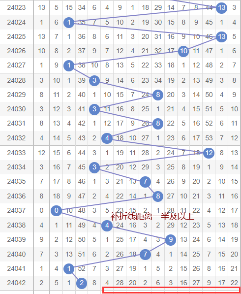 本期可以关注边界内走折线距离一半及以上的号码:2~5