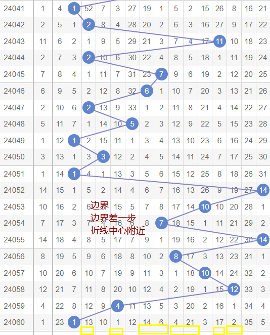 根据近期走势,本期考虑中较近距离和远距离号码下落、边界回归、折线中心,结果是2、4、6、7、8、9、11、12