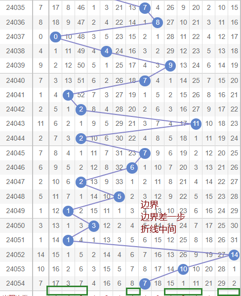 根据近期走势,本期考虑走折线边界差一步、回归边界、折线中间,结果是0~2、6、9~11、13、14