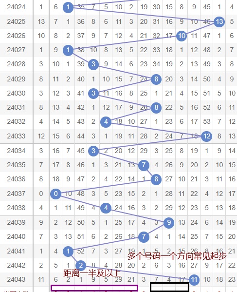 可以考虑重新走三个号码一个方向,常见起手对于本期是:5~7