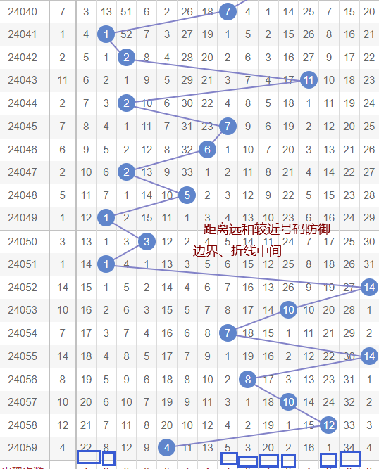 根据近期走势,本期考虑中较近距离和远距离号码下落、边界回归、折线中心,结果是0、1、7、8、9、10、12、13