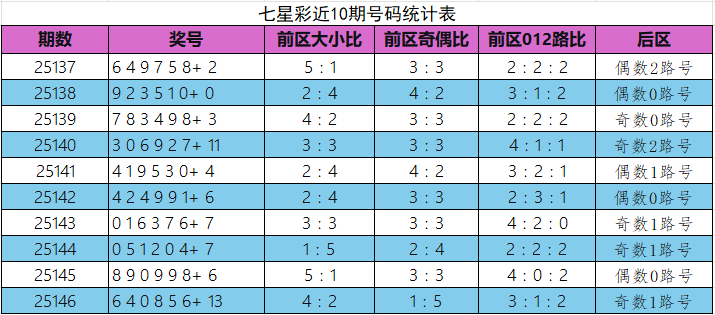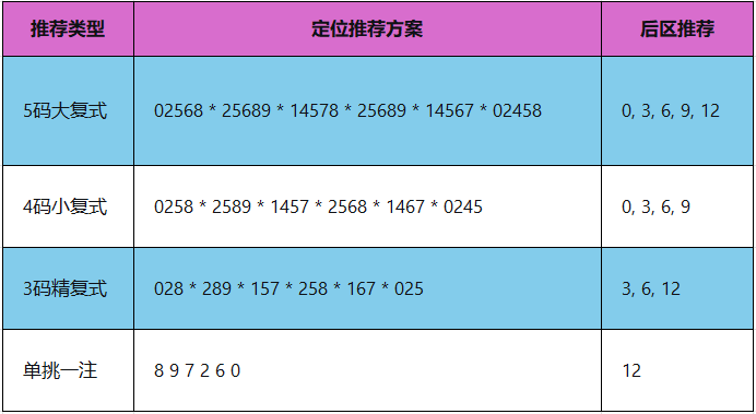 本期策略:在继续重视0路号码的同时,关注其回补。后区大号(10以上)近期出现频繁。